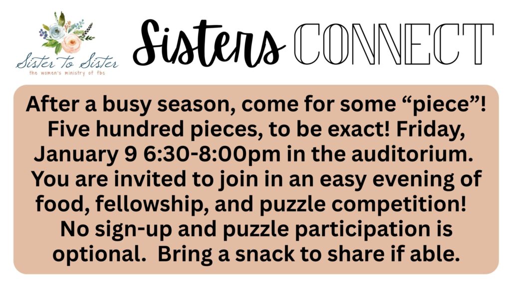 160 Daniel Road, Shenandoah Junction, WV 25442 Directions Auditorium January 9, 2026 6:30 pm – 8:00 pm Featured Events Sisters Connect
